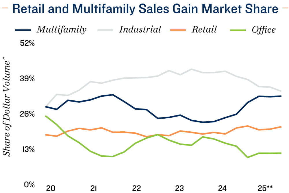 Stabilizing yields to aid investment. Easing bond yields are starting to affect investor sentiment, narrowing bid-ask spreads and improving financial visibility. Still, with long-term borrowing costs likely to hold structurally higher than in the pre-pandemic decade, investors are becoming more selective. Core assets with stable income profiles – particularly industrial and grocery-anchored retail – continue to attract institutional capital, while value-add and development opportunities remain constrained by elevated construction and financing costs. Modest yield compression and improving macro stability could support a gradual recovery in transaction volumes through 2026, though the pace will hinge on the trajectory of both policy easing and fiscal expansion.
