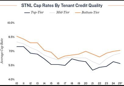- Cap rates on STNL properties often vary depending on the tenant's credit standing and lease term remaining. These factors have become increasingly important over the past year.