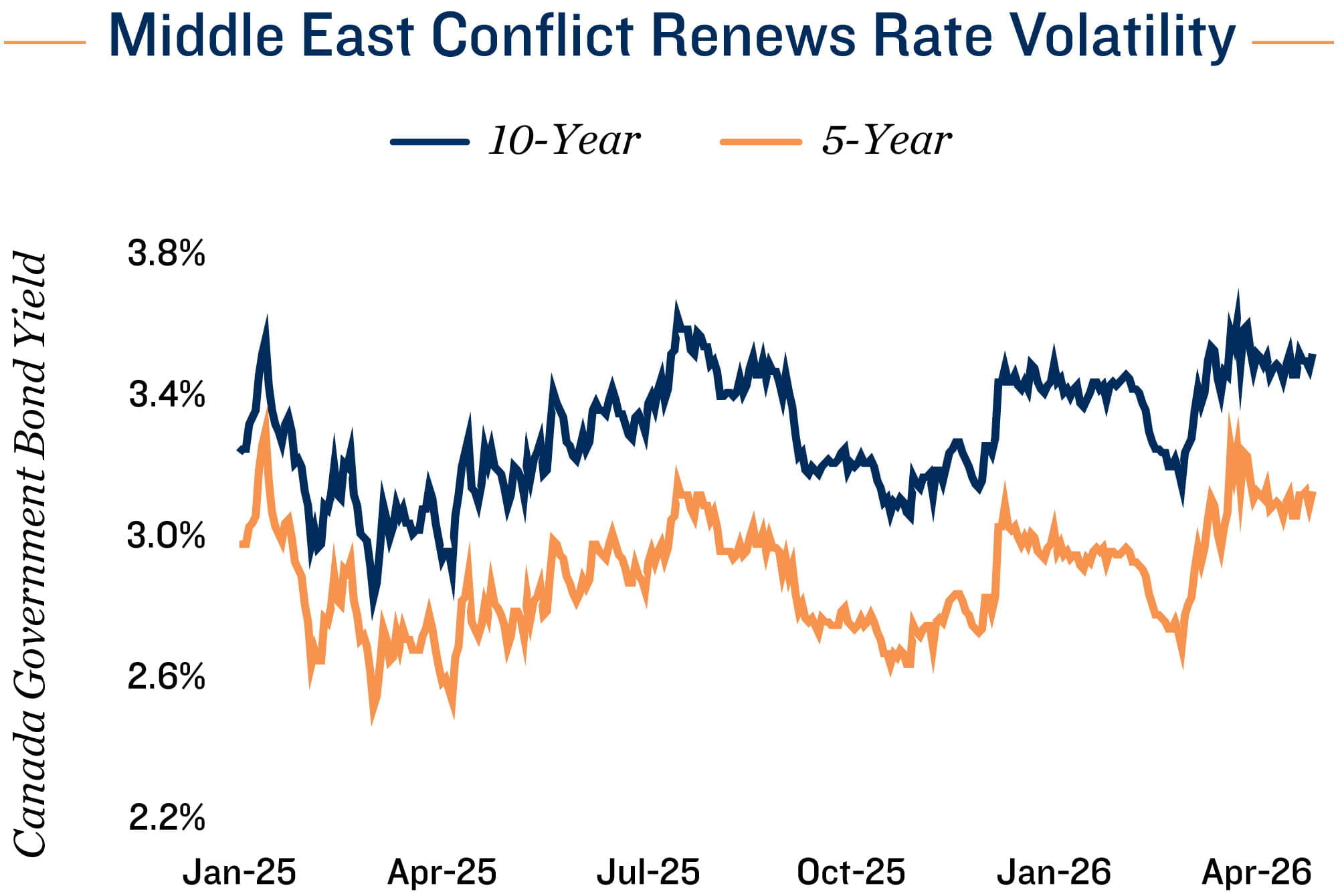 Bank of Canada holds overnight rate amid global volatility. The Bank of Canada held its key policy rate at 2.25 per cent for the fourth consecutive meeting as officials balance a softer domestic economy with renewed inflation risks. While economic growth resumed in early 2026 after a fourth-quarter contraction, underlying momentum remains muted. Consumer and government spending are supporting activity, but tariffs, trade uncertainty, and the ongoing conflict in the Middle East continue to weigh on inflation expectations, exports, and business investment. Slower population growth, affordability challenges, and broader economic uncertainty are also restraining the housing market. At the same time, the labour market remains soft with unemployment holding in the 6.5 to 7.0 per cent range. As a result, the central bank is taking a wait-and-see approach.